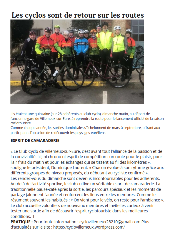 - Première sortie de l’année pour les cyclos